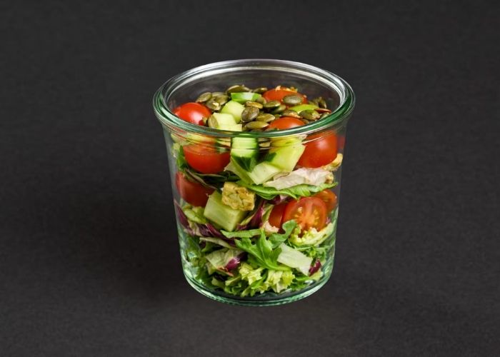 Gartensalat | Kirschtomate | Gurke | Kürbiskerne | Kräuter-Dressing | vegan